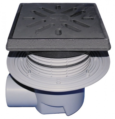 Studzienka serii Perfekt DN110 z odejściem poziomym, ramą 260 x 260 mm i kratką 226 x 226 mm z żeliwa , koszem na zanieczyszczenia i zasyfonowanie 10988 10988 10988