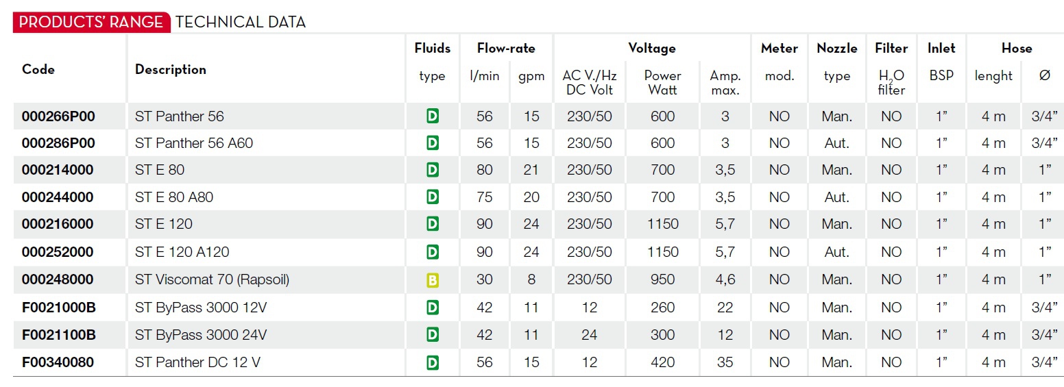 Wysokiej jakości łopatkowa pompa Panther 56 do przepompowywania oleju napędowego. Pompa Panther o wydajności do 56 l/min. zasilana napięciem 230 V znalazła szerokie zastosowanie w dwuplaszczowych zbiornikach na olej napędowy oraz dystrybutorach paliwa.